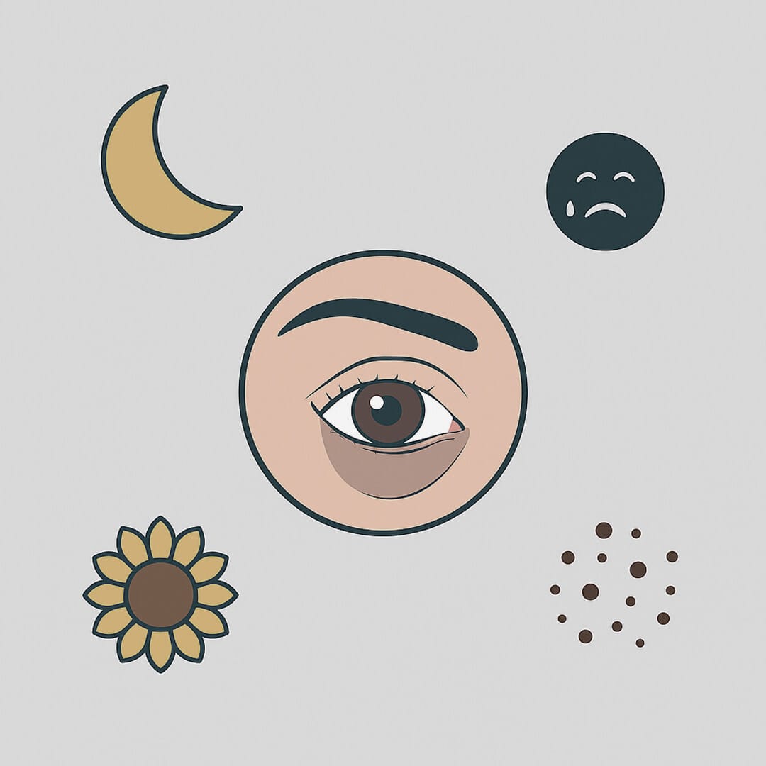 눈 밑 피부가 얇아 푸르스름한 정맥이 비쳐 보이는 현상. 유전적 요인이 크며, 피로·수면 부족·스트레스로 악화됩니다. - 색소 침착형 다크서클